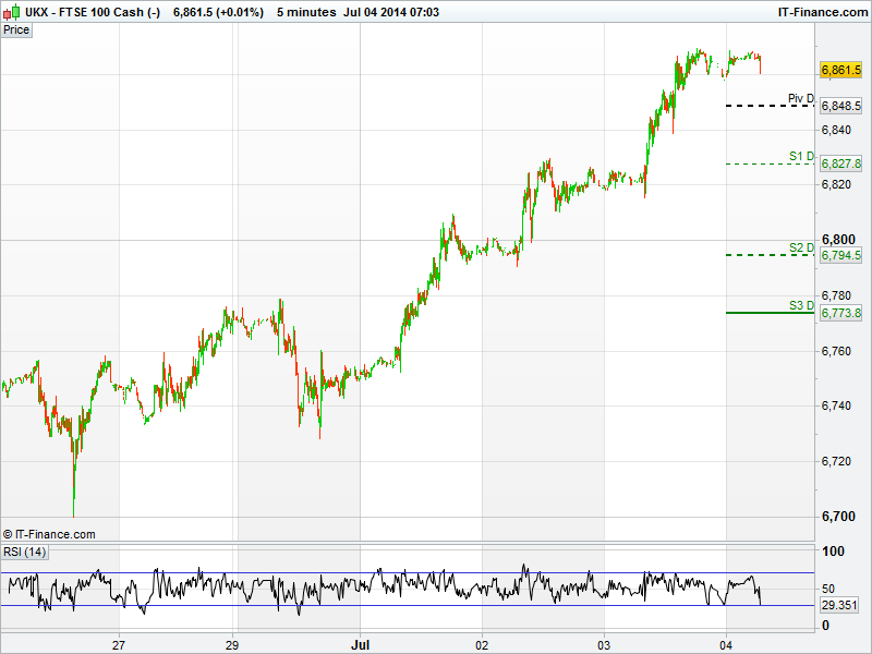 UK 100 called to open flat at 6863, after another strong session yesterday, amassing 49pts as U.S. markets hit record highs again.