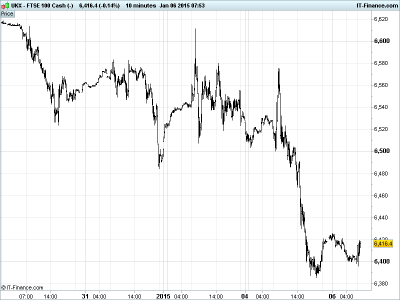 UK 100 Index called to open -8pts at 6409, making it another negative start and having given up more ground sharply yesterday from the festive peak around 6650. This maintains the trend of falling highs from September, backed up by falling highs on the daily RSI, with potential for a full retrace to the Oct/Dec/2014 lows around 6100. The 6400 level was regained before the US close, but we are back testing it as we write. Watch levels: Bullish 6450, Bearish 6375