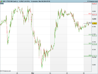 UK 100 called to open +20 points at 6789 despite most traders’ attentions still on the tensions in Ukraine. The reshuffle in the UK’s flagship index has been confirmed, with Barratt Developments and St. James’s Place joining the UK 100 , replacing Amec and Tate & Lyle. It is no real surprise that Barratt’s has been promoted with the share price nearly doubling over the past year thanks to a buoyant property/construction market. Heritage Oil, Infinis Energy and Just Retirement Group entered the index, as Edinburgh Dragon Trust, Devro and Kenmare Resources were removed.