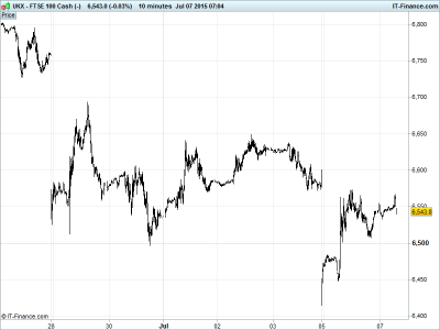 A tepid opening call comes amid continuing chagrin in the global markets with Greece grinding its way towards an exit from the Eurozone – commentary this morning suggesting that if no deal within the next 48 hours, it’s all over, which is worrying considering that Germany sees no reason to re-start negotiations following Sunday’s ‘no’ vote – and fractures appearing in European relations with Creditors (meaning Germany) seen by many as having ‘lost the fight.’