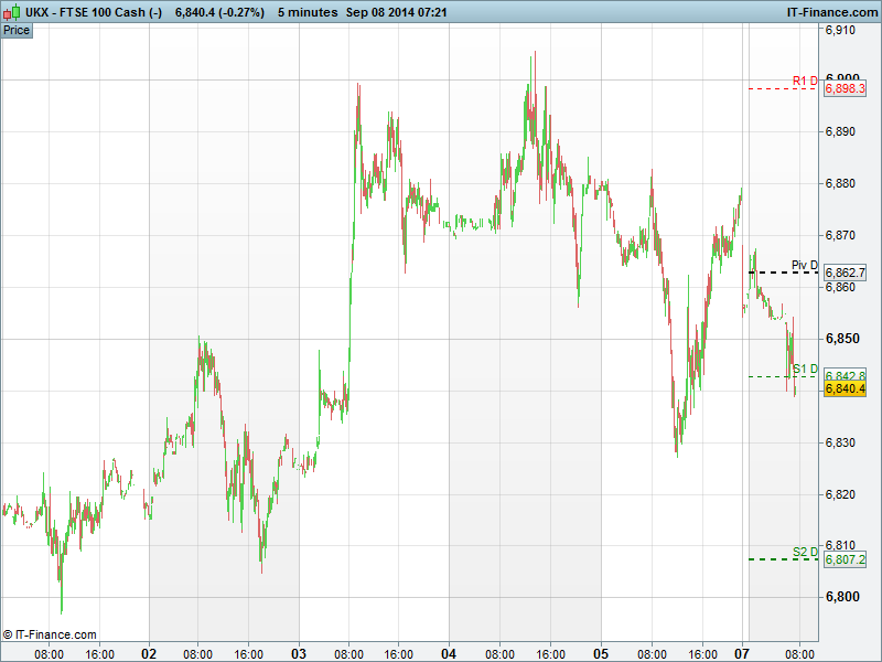 The UK 100 Index is called to open lower by 17pts at 6836pts following a typical 'risk off' Friday session which saw 23pts dropped.