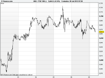 In FX markets, the pound is showing further weakness against the dollar, currently trading at 1.549 (just off one week lows). € vs $ is also trading around one week lows of 1.228