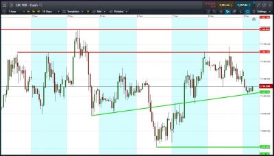 UK 100 Index called to open -30pts at 7110, back from Thursday’s 7170 highs but holding intersecting support (since 2 Nov) at 7100. Bulls need a break above 7125 to give confidence in a rebound, Bears a breach of 7103 before any decline towards Wednesday’s 7025 lows. Watch levels: Bullish 7125, Bearish 7100