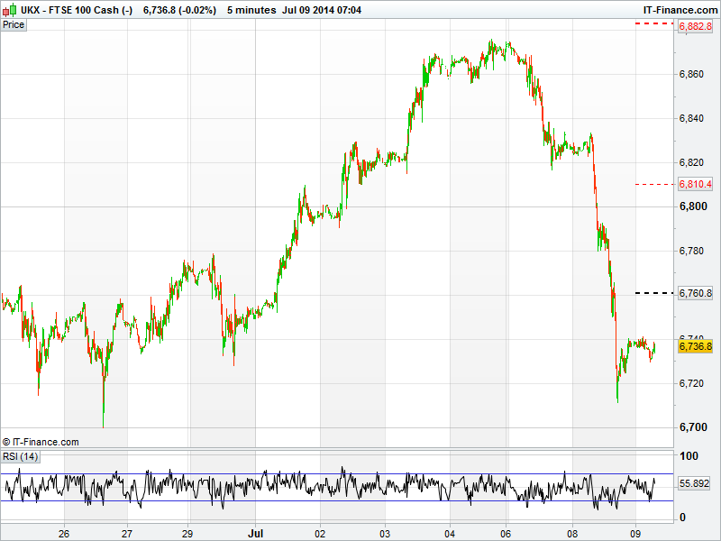 UK 100 called to open flat at 6740, after a rout in equity trading yesterday saw the UK 100 shed 85pts.