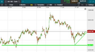 UK 100 called to open +37 points this morning at 6568. Calls for a positive open in the UK today come as it is reported that investors are beginning to view UK shares as undervalued post-Brexit. This comes in-spite of a mixed session on Wall Street yesterday, which saw the Dow Jones closing down 0.03% at 31,375 while the S&P 500 ended 0.11% lower a 3,911. The Nasdaq once again out performed the other major benchmarks, closing up 0.14% at 14,007 and notching up another record close in the process. Investor optimism showed signs of returning in Asia this morning ahead of the Chinese New Year holiday, with Japan’s Nikkei 225 up 0.07% and Hong Kong’s Hang Seng rising by 1.68%.