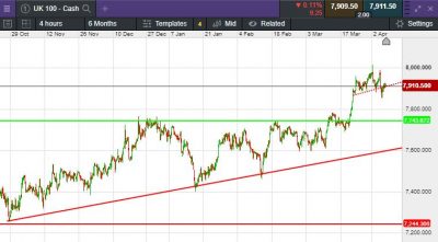The UK 100 called to open +48 points at 7,980. UK 100 is set to open higher on Wednesday, ahead of the important inflation reading (CPI) from the US this afternoon at 1:30pm. US inflation is expected to show that the rate of YoY consumer price growth picked up to 3.4% last month, from 3.2% in February. Wall Street ended mixed as the Dow closed down slightly, S&P +0.1% and Nasdaq +0.3%. In Asia the Nikkei closed -0.3%, Shanghai -0.6% and Hong Kong +2%.