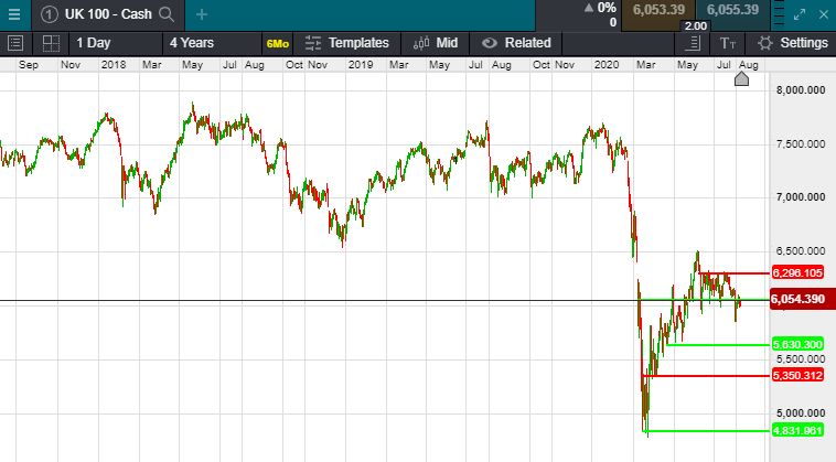 UK 100 called to open +40 points this morning at 6042.   On Friday the Dow Jones and S&P 500 managed to add small gains, investors seemingly brushing off concerns over rising U.S.-China tensions and ongoing coronavirus stimulus negotiations.  The Dow closed 46.50 points higher, or 0.2%, at 27,433.48. The S&P 500 ended the session up 0.1% at 3,351.28. Those gains were enough to stretch their winning streaks to six days. However The Nasdaq Composite lagged, falling 0.9% to 11,010.98 and snapping a seven-session winning streak. The index was dragged lower by tech heavyweights Amazon and Netflix falling 1.8% and 2.8%, respectively. Microsoft dropped 1.8% also and Apple slid 2.3%.