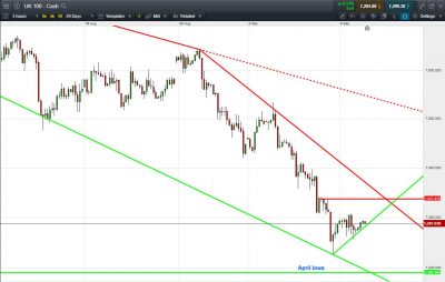 UK 100 Index called to open +5pts at 7285, retracing some of Monday’s Sterling-inspired overnight losses. Bulls need a break above 7308 Monday’s highs to regain upwards momentum; Bears require a breach of 7256 overnight lows to continue the downtrend. Watch levels: Bullish 7320, Bearish 7250.