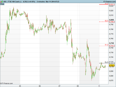 UK 100 called to open +20 points at 6702, following a slightly stronger session in Asia overnight as the Bank of Japan kept monetary policy steady by unanimous vote. The Japanese central bank said the economy continues to recover gradually and cut the view on exports saying they have recently levelled off while maintaining its economic assessment. The US markets were however down on Monday due to poor Chinese data. China reported a fall of 18% in exports and a 10% increase in imports, which meant the globe's second largest economy switched to a trade deficit. The Dow Jones was down 34 points at 16,418 whilst the S&P was down 1 point at 1877. In Asia, the Nikkei was recently up 103 points at 15,224 whilst the Hang Seng was up slightly at 22,279 (14 points).