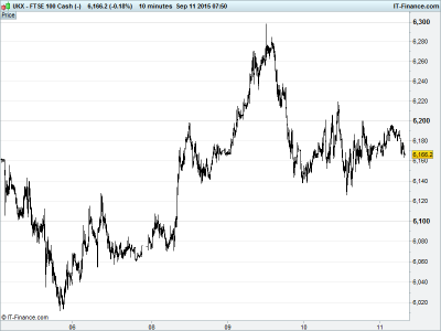 In focus today will be BoE/GFK UK inflation expectations at 9.30am followed, in the afternoon, by surely more deflationary data from the US in the form of US PPI worsening in August and Uni of Michigan US Consumer Confidence pulling back slightly, ever closer to 2015’s May lows. The evening’s US Baker Hughes Rig Count is likely to remain of interest to Oil traders.
