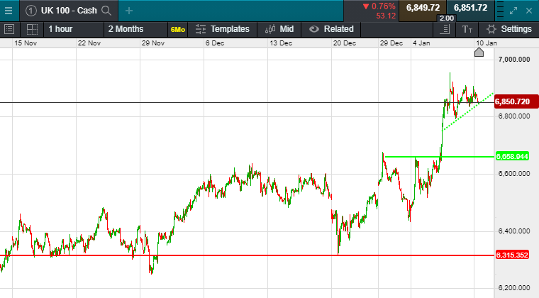 UK 100 called to open -23 points this morning at 6852.