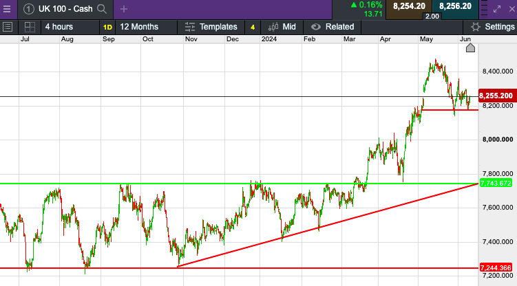 The UK 100 called to open +31 points at 8,259.  The UK 100 looks set for a positive open this morning after political uncertainty in Europe weighed on the blue-chip index, however investors' attention will likely now move to key economic data reads both at home and across the pond.  UK employment data out this morning showed Unemployment in the UK rose to 4.4% in the three months to April, in the latest sign that high interest rates are loosening the labour market.  It’s the highest unemployment rate since July 2021.  US stock markets reached new record high yesterday, but investors remained cautious ahead of key reports on consumer prices and the Federal Reserve’s policy announcement.