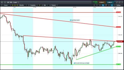 UK 100 Index called to open +50pts at 7155, holding an overnight rally and break above 7125, challenging 1-month shallow falling resistance at 7167. Bulls need a break above Thursday’s 7175 peak (maybe even 7195 early-Nov highs?) for further upside towards 7300. Bears require a breach of 7150 for a retrace towards 7100. Watch levels: Bullish 7175, Bearish 7100