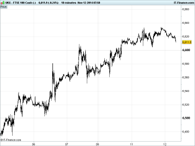 This morning Europe, and Germany’s woes in particular highlighted with German Wholesale Prices falling negative in October. Note also news of 5 Banks including RBS and HSBC being ordered to pay around $3.3bn for their part in manipulation of benchmark foreign exchange rates. Banking legal problems not over till they’re over.