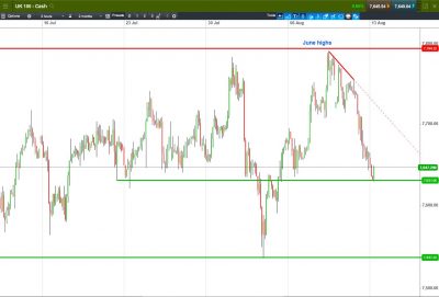 With no other significant macroeconomic news due on Monday, it’s the rest of the week to which market watchers cast their eyes. Of particular interest to UK Index investors will be UK July Consumer Price Inflation (Weds, 9:30am), which is expected firmer at 2.5% YoY after 3 months of weaker than expected price growth. UK prices are keeping above the Bank of England’s 2% target rate and, thus, appear to support the central bank’s rate hiking policy. Watch UK Index Banks and GBP.