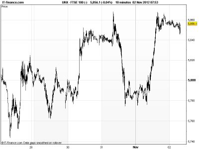 In focus today will be the US’s Non-Farm Payrolls and Unemployment rate for October. The former is seen adding 125K jobs, this after the ADP reports yesterday added 158K. The real worry is whether the much improved unemployment rate last month will tick back up – for Fed Chairman Bernanke who was linked his QE3 programme to the metric and Presidential incumbent Obama whose job is at risk with next week’s elections.