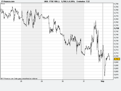 UK 100 called to open -5 points, as Ben Bernanke offered hints, but no certainty of action to come at last Friday’s Jackson Hole speech.  An interesting 2 weeks await until the next FOMC meeting with upcoming macro-economic data viewed to support/negate speculation of QE3.  The Non-Farm Payroll number at the end of the week could be have added gravitas, as the job market was highlighted as “important to achieve further progress” by Bernanke.
