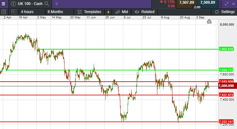The UK 100 called to open -17 points at 7,510.  The UK 100 looks set to open lower this morning after UK GDP data showed that the economy had contracted 0.5% in July, worse than the 0.2% economists had expected.  On Wall Street The Nasdaq fell 1.04% to 13,773.61 in its first losing day in three. The S&P 500 dropped 0.57% to 4,461.90. Meanwhile, the Dow Jones gave up 17.73 points, or 0.05%, to close at 34,645.99.