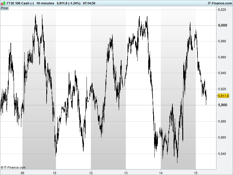 UK 100 Index called to open -10pts at 5910 having sold back from another test of 6000 to keep us in a 7-day sideways range 5850-6000. That JPMorgan call to sell any rallies is proving profitable so far. Potential for support at 5900 via highs of early yesterday. Note, however, equal potential for this sideways move to be consolidation before either a rebound or another leg down to continue the downtrend from April 2015 all-time highs. Watch levels: Bullish 5935, Bearish 5890.