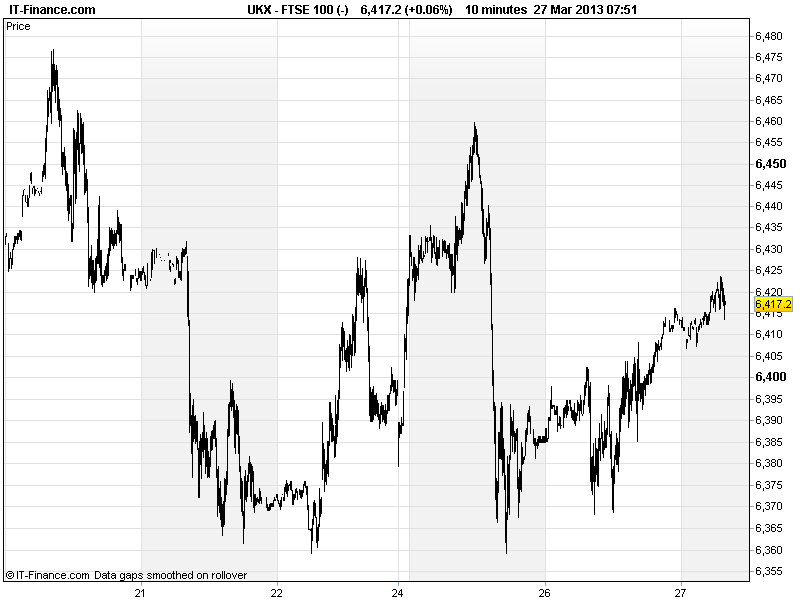 UK 100 called to open +20pts, with most Asian indices higher after a positive handover from the US where the Dow Jones hit a fresh all time record high and the S&P closed within a whisker of it thanks to some encouraging macro data (durable goods orders + housing) offsetting some of the on-going concerns from Cyprus and mixed messages from EU politicians (Special case? Template? Change to EU law?).