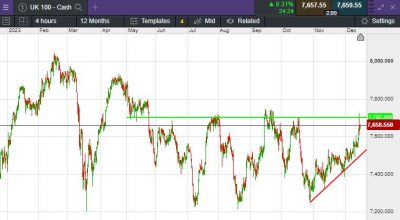 The UK 100 called to open +10 points at 7,659. The UK 100 is expected to open marginally higher this morning follow two days of Interest rate decisions from around the globe, The US Federal Reserve, European Central Bank and Bank of England all chose to hold interest rates, but it was the dovish tone of the US Federal Reserve which took the headlines. On Wall Street yesterday The Dow Jones closed higher on as the 10-year Treasury tumbled below 4% and a surprise gain in retail sales gave investors further confidence 2024 would bring a soft economic landing. The 30-stock Dow closed at a record high, ending the day up 158 points, or 0.43% at 37,248.35. On Wednesday, it marked its first-ever close above 37,000. The S&P 500 added 0.26% to end the day at 4,719.55, while the Nasdaq gained 0.19% to 14,761.56.