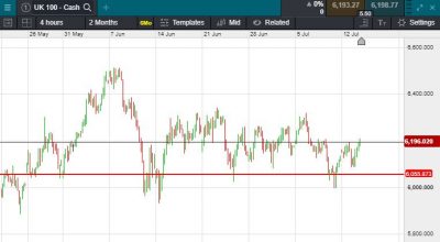 UK 100 called to open +52 points this morning at 6231.  A positive open is expected as Moderna said today that its Coronavirus vaccine had produced robust immune response in all 45 patients in its early stage human trial.  This news comes after earnings season kicked off in the US yesterday with a bang as JP Morgan chase beat both revenue & profit expectations, all eyes will be on Goldman Sachs today as they report their quarterly earnings.  This paired with stand out numbers from Caterpillar saw the Dow Jones rise by 556 points at the close, leading to the US 30's best day since June 29th.  Also in positive news for investors Florida reported a daily rise in cases below the 7 day average, whilst California saw a fall in the number of daily cases.  Brent crude oil trades at $43.09 a barrel, up 0.44%.  While gold is changing hands at $1,806 an ounce, down 0.13%.