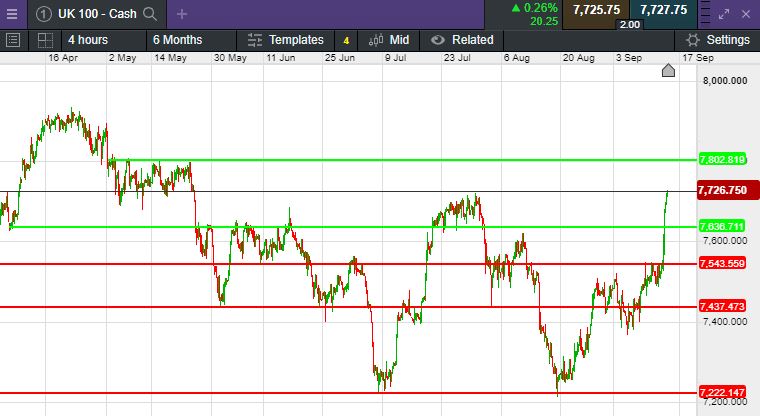 The UK 100 called to open +54 points at 7,727.
