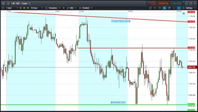 UK 100 Index called to open +25pts at 7063, albeit back from a bullish overnight flirt with 7100 to maintain a 6980-7100 range. Bulls need a break back above 7080, if they want to see another test of 7100 while Bears require a breach of 7050 if they want a full retrace to 6980. Watch levels: Bullish 7075, Bearish 7050