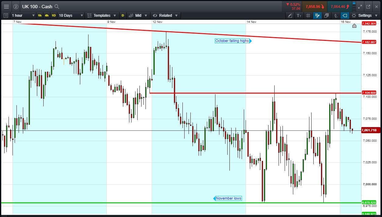 In focus today is sure to be the ongoing turmoil surrounding the UK Cabinet and the fate of Theresa May’s Premiership. Following the unveiling of the Brexit agreement, high profile ministerial resignations and a potential vote of no confidence in the leadership, EU and Brexit-sensitive UK Index names (Banks, Airlines, Housebuilders) and GBP could remain volatile into the weekend.