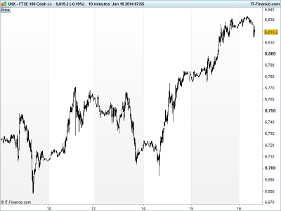 UK 100 called to open +5pts at 6820, testing levels last seen end-October before markets began fretting about tapering, finally breaking out of a the sideways festive range. All eyes now on the top of said range reverting to support to revive the December rally and keep the long-term uptrend alive.