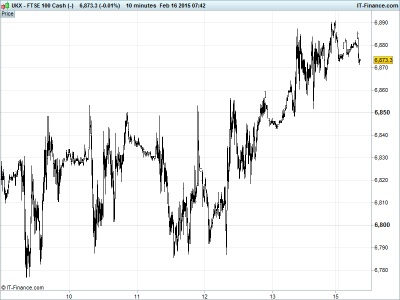 The steady open to the new week comes courtesy of last week’s strong gains driven by positive Eurozone data but investors still waiting for proof of real progress on both the Greek debt negotiations (extended talks expected, still significant gaps between both sides) and the ceasefire in Ukraine (tentative at best). Note Asian equities failing to get too excited by Japan’s exit from recession and ratings agency DBRS confirming Germany as AAA stable.