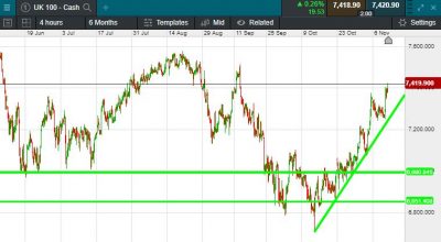 The UK 100 is called to open -2 points this morning at 7367.