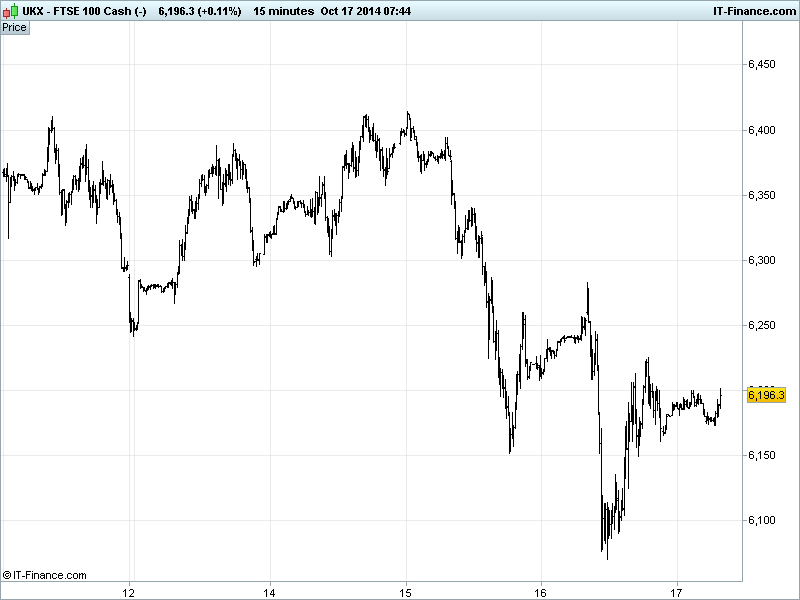 UK 100 Index called to open -5pts at 6195 after a flat US finish as investors maintain a very cautious stance on global growth outlook (US, Eurozone, China), the risk of another Eurozone crisis (fuelled by deflation; sovereign yields rising again) anxiety over the spread of Ebola, new and existing Geopolitical tensions and Q3 results disappointments with Google -6% after hours after missing estimates due to slower click growth and margins hurt by higher costs.