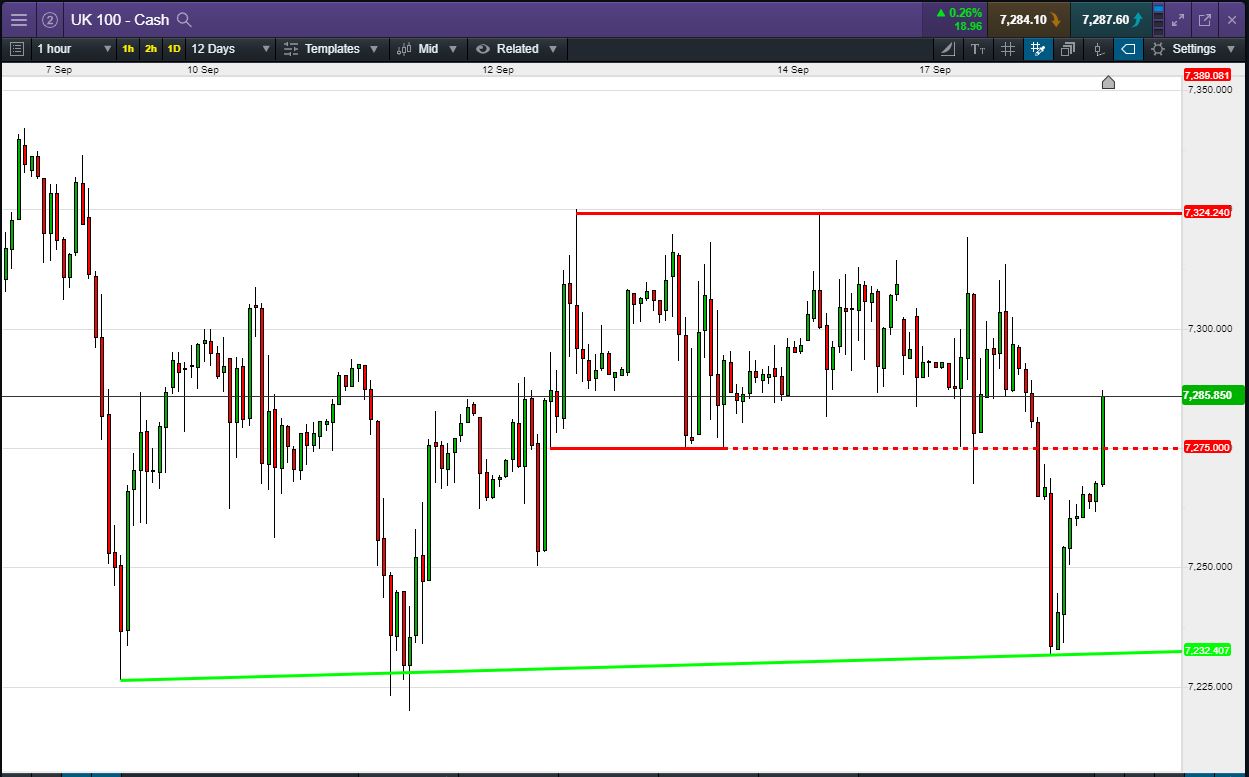 UK 100 Index called to open -15pts at 7285, but it is in the midst of a strong rebound (+50pts) from a fresh overnight test of last week’s lows. Back in the prior range, Bulls need a break above 7300 in order to revisit the 7325 ceiling. Bears require another breach of the 7275 channel floor to for a fall back to the overnight lows. Watch levels: Bullish 7300, Bearish 7275