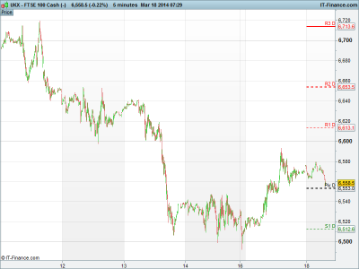 UK 100 set to open slightly lower by 10 points at 6560 following a positive start to the week whereby it finished in the blue by 40 points, helped by strong performers amongst the house builders and a relatively muted response from Western leaders regarding Crimea.