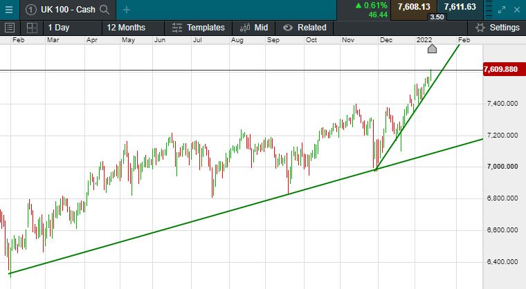 The UK 100 is called to open -11 points today at 7600.   A small dip is expected this morning for UK markets, after yesterday braking through the 7600 level for the first time in two years. ahead of unemployment data this morning and Wall Street returning after a long weekend. It was a mixed session in Asia this morning, as the Bank of Japan shifted its view on inflation risk for the first time since 2014, however, the BoJ made no change to its monetary stance on Tuesday, opting to keep its negative interest rate, asset purchases and yield curve control policies unchanged. The Nikkei in Japan slipped 0.27% and South Korea’s Kospi fell 0.89%.  China’s Shanghai Composite gained 0.73% while Hong Kong’s Hang Seng index fell 0.31%.  US markets were closed for Martin Luther King day.