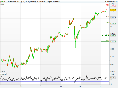 UK 100 called to open up 16pts at 6765, a fifth straight day of gain on the cards?