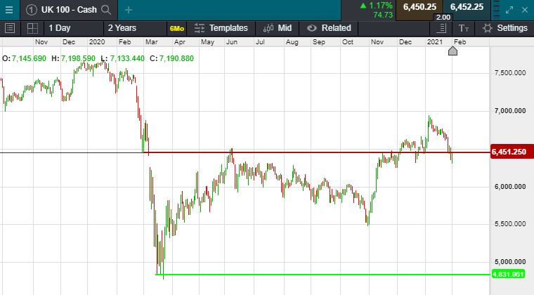 UK 100 called to open +52 points this morning at 6452. A welcome call for a positive open today following a tough week for global markets last week that saw 200 plus points taken from the UK blue chip index. Markets have been driven higher as Reddit traders look to target the silver market. Silver futures rose 6pc overnight as members of the WallStreetBets forum suggested people buy exchange-traded funds linked to the metal because prices have been kept artificially low. Overnight in Asia shares rallied on Monday, the Nikkei in Japan climbed 1.4% after four straight sessions of losses. adding 1.2%, after shedding almost 2pc on Friday, while Chinese blue chips gained 0.5% as the country's central bank injected more cash into money markets.
