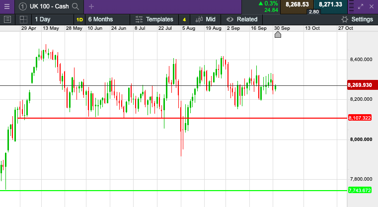 The UK 100 called to open +38 points at 8,274.  The UK 100 looks set to open higher this morning, bouncing from late losses yesterday after GDP data earlier in the day showed the UK economy wasn't growing at the speed hoped, missing expectations by 0.1%.