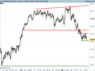 Calls for a negative start to the week come after German coalition negotiations failed late last night, sharply reducing the prospect of Angela Merkel beginning her fourth term as Chancellor. The Euro and Germany’s DAX are both trading lower as the prospect of another election only two months after the last vote becomes a real possibility.