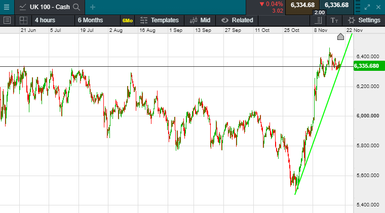 UK 100 called to open +5 points this morning at 6338.