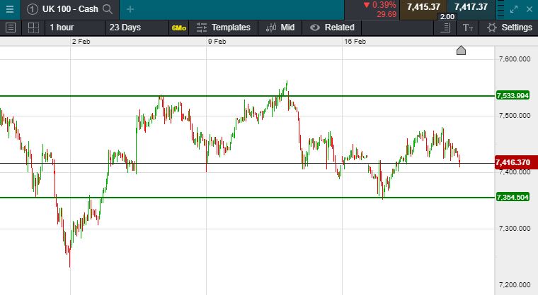 UK 100 called to open -20 at 7416; Asian stocks, U.S. and European futures retreated Friday amid renewed concern about the impact of the coronavirus as cases outside of China increased. Treasuries and gold advanced. Shares in Korea and Hong Kong saw the steepest losses, with more modest declines in Australia. Japanese stocks closed little changed while those in China edged higher. The Nikkei closed down 92 points at 23,386, The Hang Seng traded 291 points lower at 27,318 & the Chinese CSI traded 4 points higher at 4,149. It was also a day in the red for the US yesterday which saw the Dow Jones close at 29,219 (-128 points), the S&P 500 close at 3,373, a fall of 13 points and the Nasdaq close at 9,75- (dropping 66 points)
