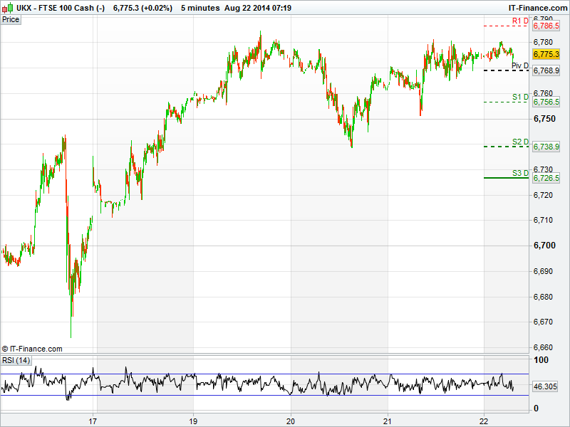 UK 100 Index is called to open higher by 3pts at 6777, having added 22pts yesterday making it six winning days out of seven.