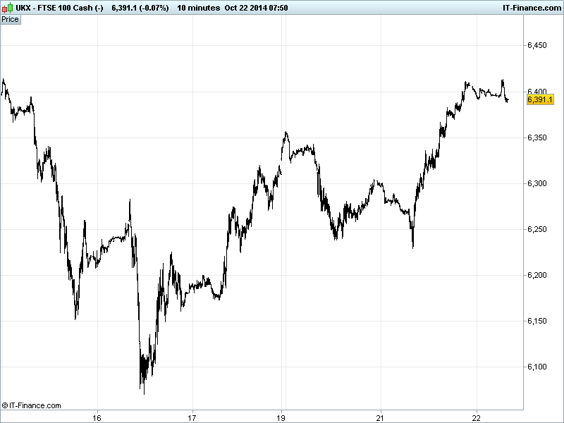 UK 100 Index called to open +15pts at 6390 making more progress from its test of 6100 15-month lows last week thanks to a positive US close last night and Asia following suit overnight with US earnings news being well received and speculation of ECB stimulus expansion (corporate bond buying) boosting sentiment.
