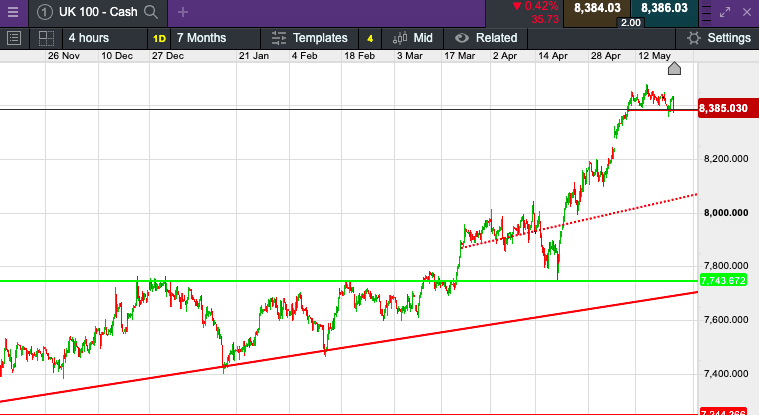 The UK 100 called to open -28 points at 8,388.  The UK 100 looks set to open lower this morning, as UK inflation data cools slower than had been expected.  The CPI read showed inflation has dropped to 2.3%, down from 3.2% in March and is now just above the 2% target set by the Bank of England.  It hasn't been this low since July 2021, the Office for National Statistics (ONS) said.  Core inflation to missed expectations, coming in at 3.9%, having been forecast at 3.6% however still also down from 4.2% in March.  Stateside yesterday saw the tech-heavy Nasdaq rise 0.22% to 16,832.62. The S&P added 0.25% to 5,321.41 and the Dow closed 0.17% higher at 39,872.99.