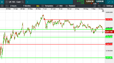UK 100 called to open +18 points this morning at 5817. After yesterday's glut in the markets, Asia followed suit and was broadly weaker. Again, this was down to possible delays in US stimulus and concerns about fresh pandemic lockdowns in Europe. Positive sentiment towards global equity markets has been dented to say the least. The UK is expected to announce to today that all bars, pubs, restaurants and hospitality venues must close at 10pm in a measure to try to curb the spread of COVID-19. Most stocks were down yesterday, but those making the biggest headlines were HSBC and Standard Chartered (-2% in Hong Kong overnight). They have been named among global lenders as having transferred more than $2 trillion in illicit funds over nearly 2 decades. Gold fell last night to $1908.76 per ounce whilst Crude rose 0.48% to $39.5 per barrel and Brent up 0.636% at $41.59.