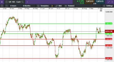 The UK 100 called to open -3 points at 7,675. The UK 100 looks set top open broadly flat after yesterdays surprise half from the MPC of the Bank of England. Data this morning saw retail sales rebounded in August after the bad weather kept consumers away from the high street in July. US stocks delivered heavy losses on Thursday after the Federal Reserve signalled interest rates would stay higher, for longer, after it held interest rates steady, a ‘hawkish’ hold, while the Bank of England’s pause in rates was perceived to be more ‘dovish’. In Japan, the Bank of Japan left its ultra-loose monetary policy in place, as was widely expected, and showed no sign of shifting its approach to monetary policy.