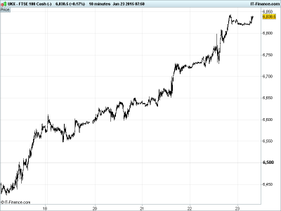 Oil holding around the middle of yesterday’s range with Brent around $49/barrel and US Light $47, albeit with volatility given concerns about a huge build in US inventories (much bigger than expected) and what the passing of Saudi Arabian King Abdullah means in terms of succession and stability in the nation and whether OPEC’s biggest producer might alter current stance on low oil prices and global supply glut.