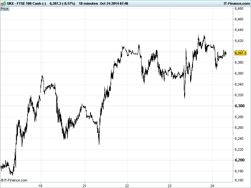UK 100 Index called to open -20pts at 6400, as investors tread cautiously following confirmation of Ebola in New York (ER doctor back from W Africa), Amazon’s Q3 results miss and weak Q4 forecast (shares -13%) and overnight China data offering little to perk up sentiment.