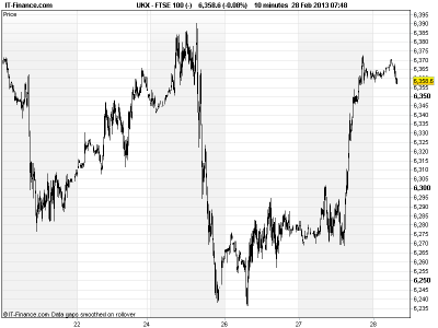 UK 100 called to open +25pts, with Italy’s election deadlock and looming US budget sequester being brushed aside and the bullish close in Europe and US. Positive sentiment helped by accommodative testimonies from Bernanke and Draghi supporting risk appetite, coupled with solid macro data from the Europe and the US, and passed into Asian trading and the last day of the trading month. Japan’s Nikkei assisted by weaker JPY and new BoJ nominations seen helping with new PM’s Abe-nomics boost to the struggling nation’s growth.
